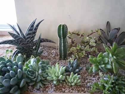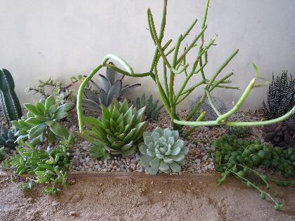 その作品に合わせて、今回は、多肉植物を植え込み、乾燥地帯のオアシスのイメージで植栽してみました。